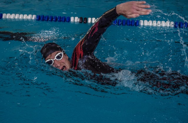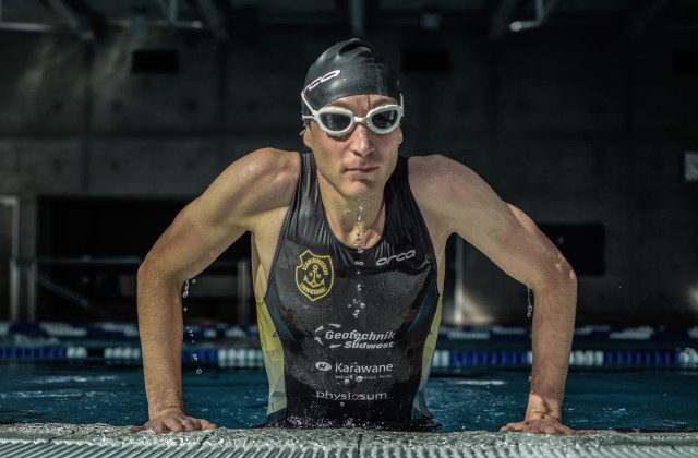 Rennen kann der junge Mann gut, das weiß er ja. Rad fahren ist auch okay. Aber im Wasser tut sich der Sportler schwer. Das allerdings ändert sich bald. Der Fabian wird ein immer bessere Schwimmer. Fürs Schwimmen, sagt er heute und grinst, „scheine ich doch ein bisschen Talent zu haben“ - was stark untertrieben ist. Wer diesem Fabian Knobelspies mal beim Training im Freibad zugeschaut hat, der weiß: Er schwimmt wie ein Fisch.