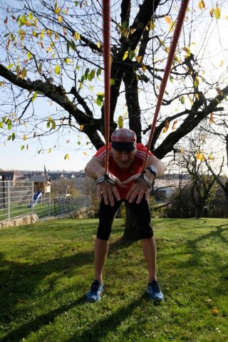 Und genau das tut Reiner Koch nun. „Ich habe jetzt wieder angefangen mit dem Zugseil-Training“, sagt der Mann, der mit seiner Familie in einem Einfamilienhaus in Asperg wohnt und einen großen Garten gleich vor der Tür hat. Sein Zugseil befestigt er an einem Baum im Garten. Bei schlechtem Wetter weicht er in seinen Fitnessraum im Keller aus. Reiner hat sich vorgenommen, mindestens zweimal die Woche ein kleines Zirkeltraining zu machen, mit drei oder vier Zugseil-Stationen. Bevor er am Zeil zieht steht freilich Aufwärmen auf dem Programm: Walken im Freien oder Rennrad fahren im Keller auf der Rolle. Danach wird gezogen: vorwärts, rückwärts und seitlich. Vielleicht auch mal im Liegen - Delfin-Beinschlag simulieren.