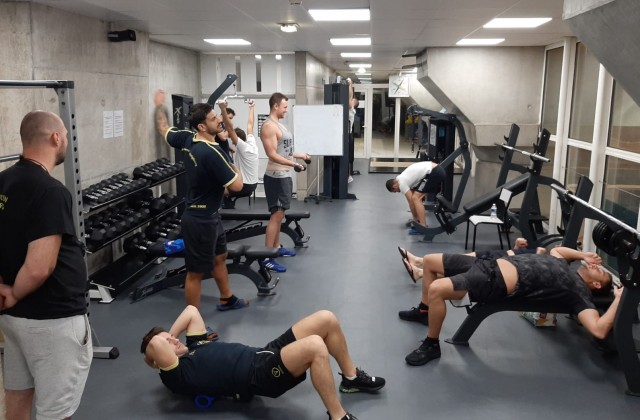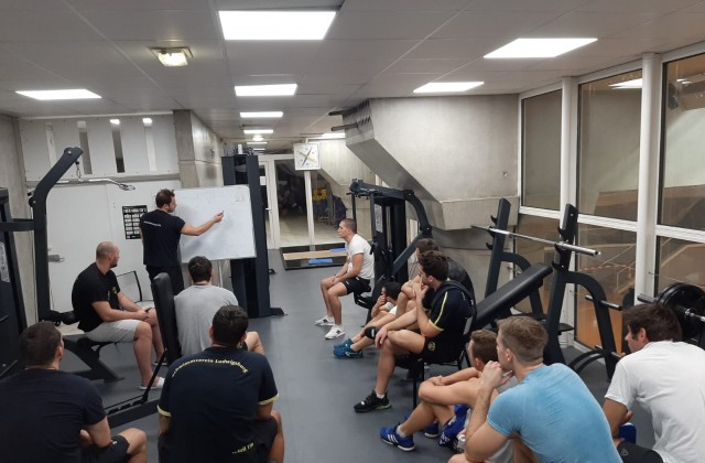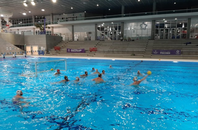 Tag zwei des Trainingslagers in Montpellier. Am Morgen wurde konzentriert und schweißtreibend im Kraftraum gearbeitet. Danach Training im Wasser: Schwerpunkt Schnelligkeit, sprinten. Anschließen eine Analyse der Spielweise der französischen Gastgeber des Turniers, das am Freitag in Aix beginnt.