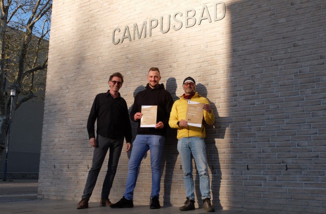 Er gratuliere - auch im Namen des Gemeinderats und der Stadtverwaltung zum Erfolg. Volker Heyn hat jetzt die beiden Gold-Urkunden an Timo van der Bosch und Martin Tschepe überreicht - am passenden Ort: vor dem Campusbad. Der SVL-Präsident sagte, er hätte gerne ein paar weiteren SVL-Mitgliedern so eine Urkunde überreicht - doch viele Wettbewerbe konnten wegen Corona gar nicht ausgetragen werden. Zunächst wäre er indes schon froh, so Heyn, wenn überhaupt wieder trainiert werden könnte. Dafür müssten umgehend die Bäder geöffnet werden.