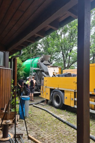 Der Ludwigsburger, OB Dr. Matthias Knecht spricht bei der Grundsteinlegung von einem „besonderen Moment“. Nicht nur für Herrn Hoffmann, auch für den Verein, vertreten durch den Vizepräsident Matthias Nagel, für Jochen Zeltwanger, der den Bau leitet, und für Gernot Jäger, der sich besonders verdient gemacht hat, weil er sich um den von den Behörden geforderten Geschwemmselschutz und weitere Auflagen kümmerte. Der Ingenieur und SVL-Mitglied Jäger hat eine Konstruktion entworfen, die selbst bei einem 100-jährigen Hochwassers dafür sorgt, dass angeschwemmtes Treibgut die Halle nicht beschädigen kann.