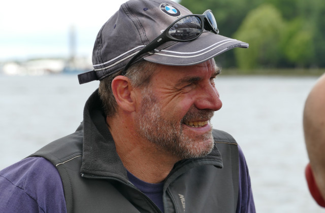 Ausgerechnet in Plymouth! In der Stadt war er schon mal, länger her, mit dem SVL. Der Verein unterhält in der 1970er- und 80er-Jahren eine Partnerschaft mit dem britischen Verein Port of Plymouth. Auch der Hans-Jörg fährt damals mit zum Wettkampf und zum Jugendaustausch nach Devon. Im Anschluss an sein Studium in Plymouth arbeitet Hans-Jörg Nafzger ein paar Jahre lang bei einer Reederei in Ipswich als technischer Manager. In Großbritannien bekommen er und seine Frau Evelyn die zwei Kinder Malte und Henrike.