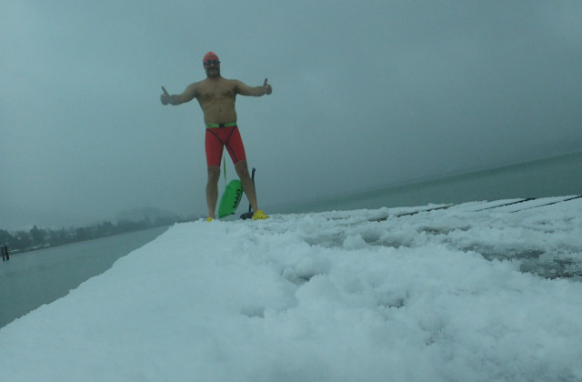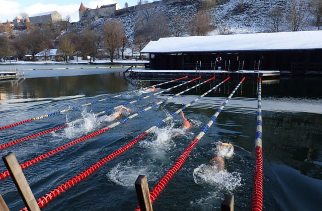 Weiter trainiert wird im Neckar trotzdem. Reiner und Martin treffen sich auch in den kommenden Wochen zum Eisschwimmen, Start und Ziel ist der Bootssteg der SVL-Kanuten. Bei einer Wassertemperatur um fünf Grad bleibt das Duo selten länger als gut 15 Minuten im Fluss, ohne Neoprenanzug wohlgemerkt. Denn Eisschwimmer dürfen im Wettkampf lediglich eine schnöde Badehose und eine Badekappe tragen.