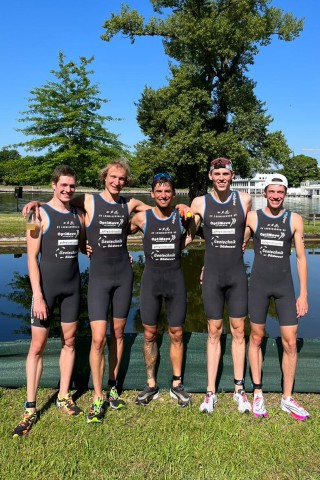 Fabian sagt, „wir sind mega zufrieden mit Platz drei hinter Darmstadt und Frankfurt“, er spricht von einer „super ausgeglichenen Mannschaftsleistung, einem bombastischen Teamergebnis und einem überragenden Corni“. Er selbst sei einerseits zufrieden mit seiner Gesamtleistung, speziell mit Blick auf das Verletzungspech. Unzufrieden sei er allerdings mit seiner Schwimmzeit. Der Wechsel aufs Rad sei - „wie bei uns allen“ - noch nicht so gut gewesen. In seiner Sechser-Radgruppe sei dann gut zusammengearbeitet worden. Beim Laufen habe ihm noch „der Speed“ gefehlt, sagt Fabian. „In bin mir aber sicher, dass die Formkurve nach oben zeigt.“