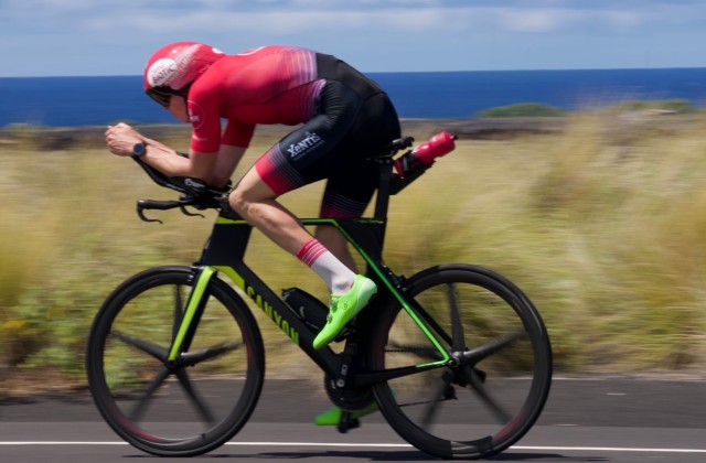 Cornelius hat einen schnellen ersten Wechsel. Er ist motiviert und will Plätze gut machen. Er hat „gute Wattzahlen auf dem Tacho, aber ein Bein ist ein bisschen taub“. Immer wieder fährt er im Stehen, „um die Muskeln zu entlasten“. Während der ersten Hälfte der 180 Kilometer macht er ein paar Positionen gut und sieht vor dem Wendepunkt in Hawi im Norden der Insel Fabi, der bereits auf dem Rückweg ist. Die letzten 40 Kilometer „waren ziemlich zäh, ich habe richtig kämpfen müssen und Positionen verloren“.
