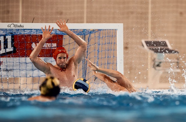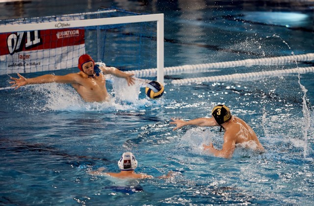 Waspo Hannover gewinnt das erste Anschwimmen. Aber macht zunächst kein Tor. Dann ist der Ball bei Ludwigsburg, Schuss Tobi Bauer, Parade. Nächster Angriff Hannover, schön gehalten vom Ludwigsburger Keeper Josip Katusa. Es ist zu wenig Bewegung im Ludwigsburger Angriffsspiel. Nächster Angriff von Waspo, die zweite Parade des SVL-Torwarts. Und wieder läuft eine 30-Sekunden-Angriffszeit des SVL ab - ohne Tor.
