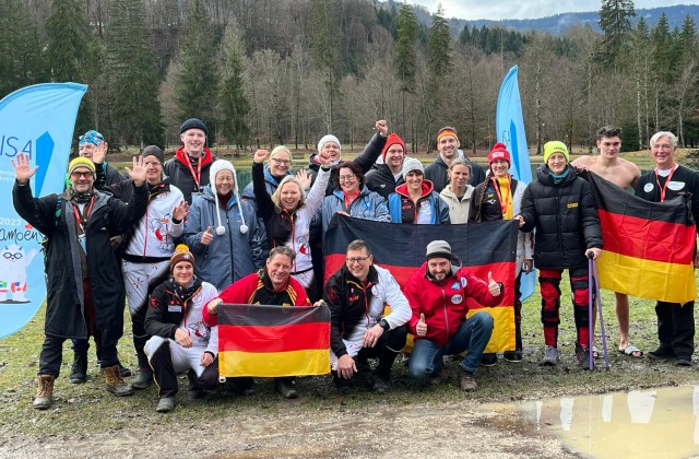 Nach seinen 1000 Metern im etwa vier Grad kalten Wasser (16:35 Minuten) hatte es sich Martin in der Sauna bequem gemacht - doch schon nach ein paar Minuten hieß es dann: nochmal raus in die Kälte und antreten mit der 4x50-Meter-Freistil-Staffel Team Germany zwei. Dieser Wettbewerb, sagt der SVLer, sei von Beginn an ein bisschen ungemütlich gewesen. Mit den vorderen Plätzen hatte die zweite Mannschaft aus Deutschland nichts zu tun, auf Platz eins landete aber Team Germany eins mit dem Langstrecken-Nationalschwimmer Andreas Waschburger.
