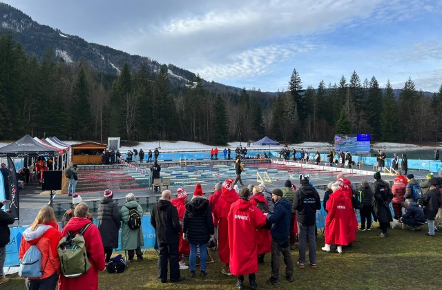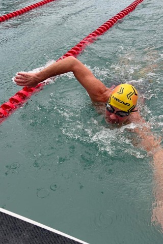 Was für ein Panorama! Die Veranstalter der Weltmeisterschaften im Eisschwimmen haben ein wirklich cooles 25-Meter-Becken in den Lac aux Dames in Samoens gebaut, man könnte glatt sagen: gezaubert. Die etwa 500 Schwimmerinnen und Schwimmer aus 40 Ländern und die Zuschauer haben einen grandiosen Blick - auch auf ein paar Alpengipfel. Am Start bei der WM der International Ice Swimming Association (IISA) war auch der SVL-Eisschwimmer Martin Tschepe, Jahrgang 1965. Fünf Einzelrennen, fünfmal in seiner Altersklasse (55 bis 59) auf dem Podium, das ist die Bilanz des Ludwigsburgers. Martin ist über die langen Strecken - die 500 und die 1000 Meter Freistil - dritter geworden. Über 50 und 100 Meter Rücken sowie über 100 Meter Lagen landete er jeweils auf Platz zwei.