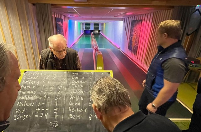 Bald wird wie wild gekegelt am diesem 6.1. Zwei Team - nach dem Zufallsprinzip zusammengestellt - treten gegeneinander an. Der Uwe und der Rudi sind tatsächlich nicht in ein und demselben Team gelandet. Nach mehreren Runden gewinnt Uwe mit seiner Mannschaft gegen das Team des Olympioniken Rudi - so, wie er es sich gewünscht hatte. Keine Frage, am 6. Januar 2024 soll wieder gekegelt werden - dann vielleicht mit ein paar mehr Mitgliedern aus allen Abteilungen des Clubs. Auf dass diese wieder weiter zusammenrücken!