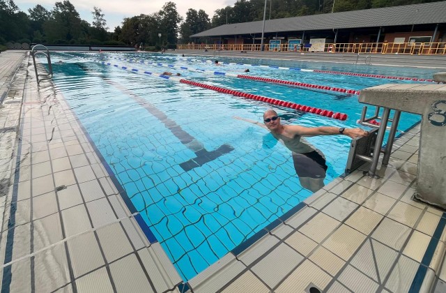 Steffen Albrecht, 58 Jahre jung, kommt regelmäßig zum Schwimmen während der Dämmerung und sagt: "Das Spätschwimmen für Vereinsmitglieder ist wunderbar, weil man auf den abgeteilten Bahnen in Ruhe in den Abend hineinschwimmend kann. Und die Abende im Freibad am Neckar sind oft besonders schön!" Steffen ist einer der vielen Wiederholungstäter, er ist seit 1974 beim SV Ludwigsburg, war früher Teil des erfolgreichen Schwimmteams in der Landesliga und später Mitbegründer der Abteilung Triathlon.