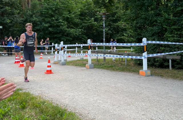 Nils sprich auch von einer „super Teamleistung“. Bei ihm sei der Wettkampf nicht gelaufen, die Power haben einfach gefehlt. Lasse und Phillip seien sehr, sehr gut geschwommen. Beim Laufen sei er schlicht durchgereicht worden, so Nils. Platz drei mit dem Team: „passt, vielleicht wäre Platz zwei drinnen gewesen“. Sein Bruder Lasse spricht von „einem genialen Rennen“, auch das Wetter habe gepasst, Nicht zu heiß, kein Regen. Er habe mit den zwei super schnellen Schwimmern von Darmstadt bis zur ersten Boje „locker mitgehalten“, dann sei er leider ein bisschen Zickzack geschwommen - und geschätzt drei Meter hinter dem Führungsduo aus dem See gestiegen, zusammen mit Phillipp. Beim Radfahren ist Lasse dann in einer großen Gruppe gelandet, die zwei ganz vorne waren weg. „Laufen war gut, insgesamt 45 Sekunden schneller als 2023 - ein ordentliches Ergebnis“, das ist Lasses persönliche Bilanz.