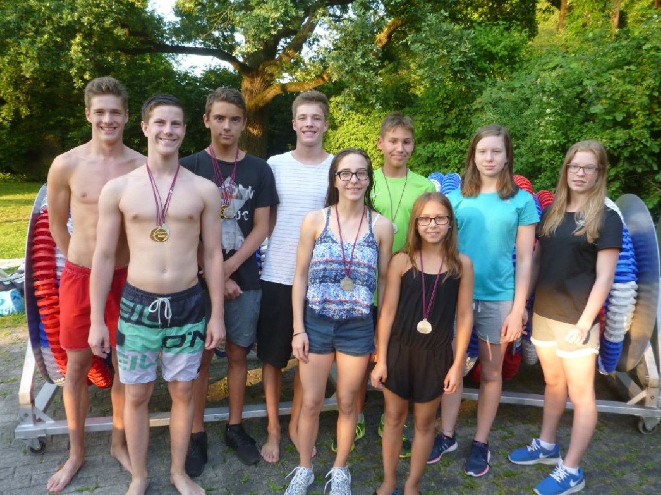 Ainhoa, Dustin, Inka und Marie erklammen je 2 X die oberste Sprosse. Ainhoa: Gold bei 50 R in 35,65 und 200 R in 2:48,53. Silber bei 50 F in 32,39 , 50 S in 40,68 und 100 L in 1:23,56. Dustin: Gold bei 100 B in 1:12,04 und 200 F in 2:12,42. Silber bei 200 B in 2:39,00 , 50 S in 30,36 und 200 L in 2:26,73. Bronze bei 100 F in 1:00,85. Inka: Gold bei 200 B in 3:04,27 und 100 R in 1:14,95.Silber bei 50 S in 33,83. Bronze bei 100 F in 1:08,20 und 50 F in 31,14. Marie: Gold bei 50 B in 39,52 und 100 B in 1:29,91. Silber bei 200 B in 3.15,85 und 50 R in 38,45. Bronze bei 50 F in 35,53.