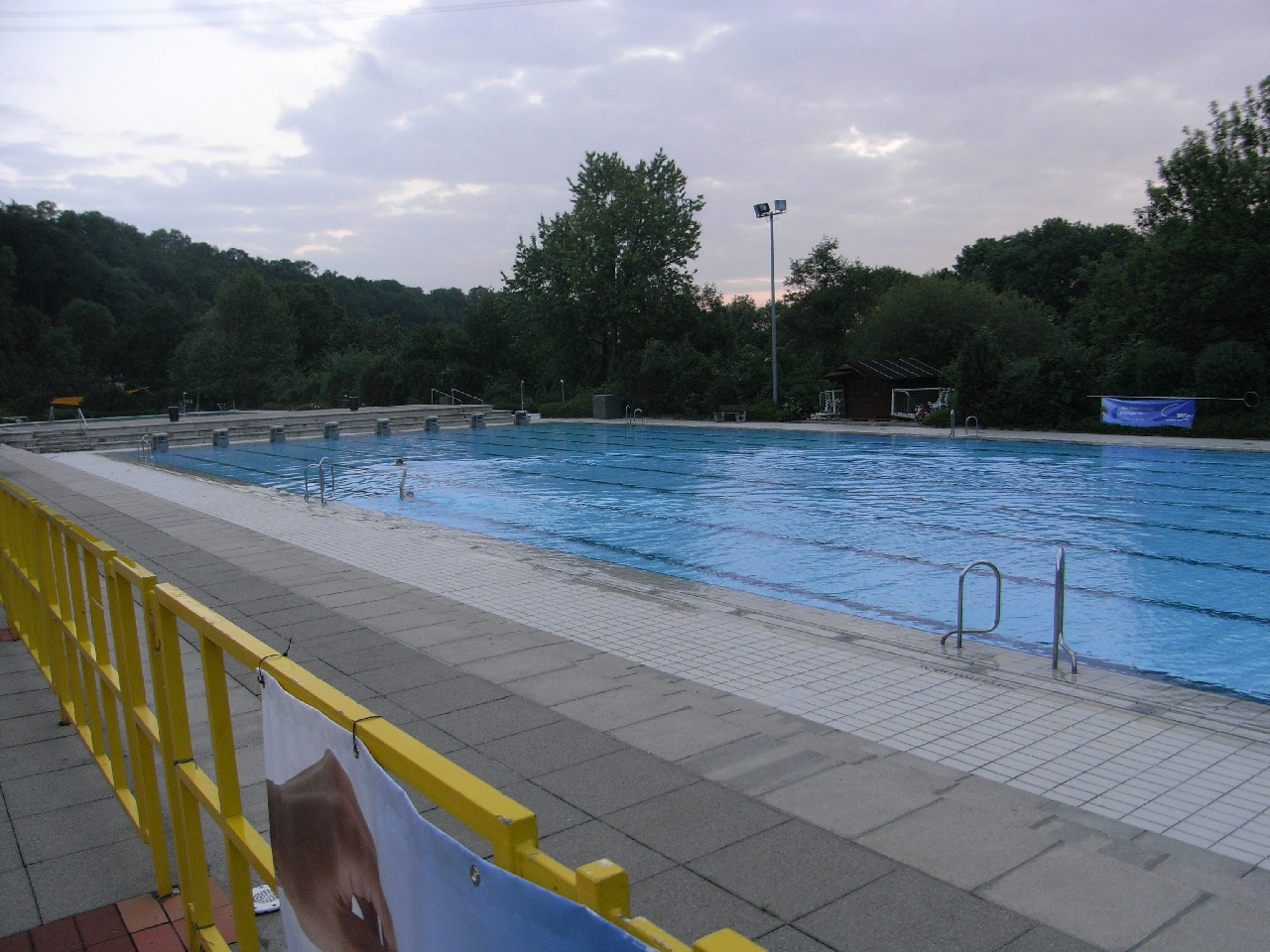 Die Schwimmhalle mit sechs 25 Meter -Bahnen liegt im Zentrum von Mühlacker neben dem Fußballstadion, Freibad und Sporthalle wunderschön ruhig an der Enz.